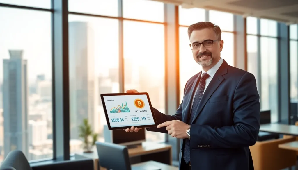 diverse team discussing cryptocurrency in a modern office.