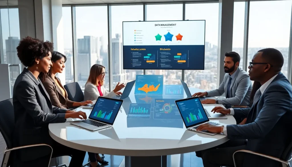 diverse team discussing Ultra Lightweight Data Management in a modern office.
